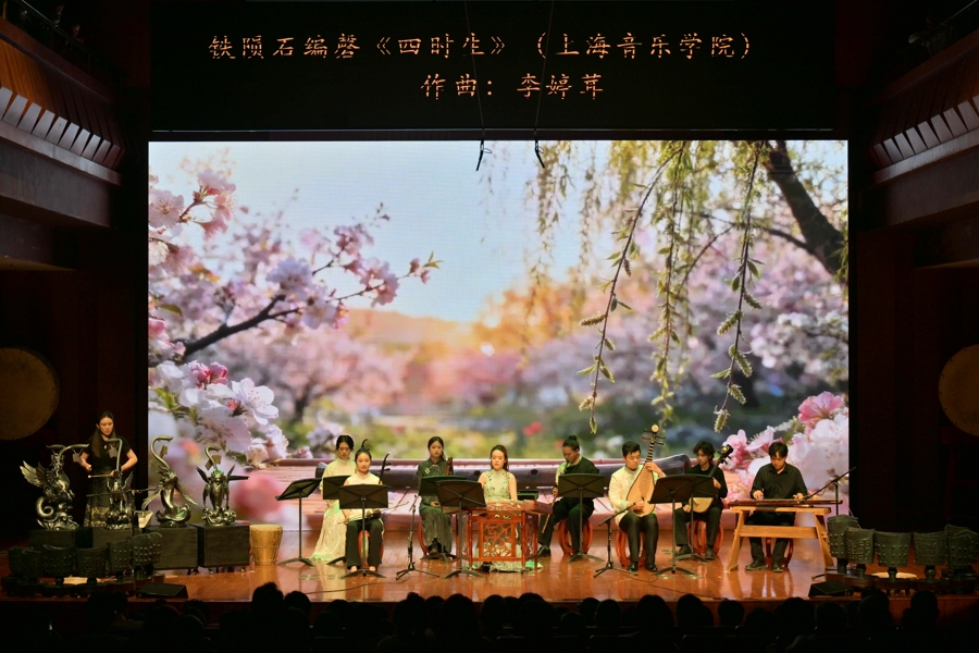 科技赋能传统文化是本场音乐会的亮点之一。舞台上,一件名为“万籁寂”的异常乐器——陨铁编磬(由非凡铁陨石打造而成),成为了全场焦点。它由上海音乐学院东方乐器博物馆与上海天文馆(上海科技馆分馆)、五云坊陨石使命室纠合推出。在中国古代,金石之乐是最高规格的礼乐,而陨铁看成“天际来客”,更是连络天地的象征。由上音师生创作并演奏的民族室内乐作品《四时生》,玄妙地将陨铁编磬与二胡、扬琴、琵琶、古琴等传统民族乐器相合伙。作品以春生、夏长、秋成、冬藏为踪影,在长线条旋律的铺展中,让46亿年的寰宇回响与中中好意思丽的礼乐传统伸开了一场超过期空的对话。这一蜕变握行是上音将“双一流”学科资源与前沿科技深度合伙的后果,彰显了“科艺合伙”的理念,拓宽了传统器乐的发达范围。