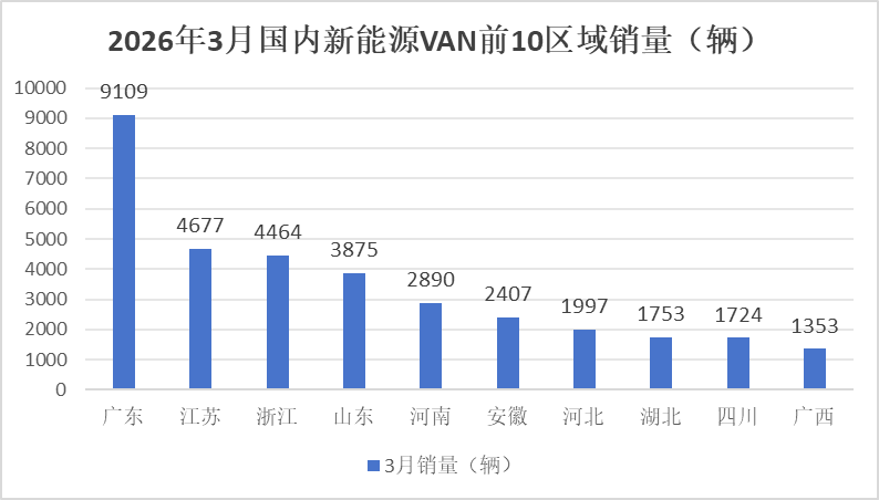 把柄终局上牌数据,2026年3月国内新动力VAN销量Top10区域市集销量统计: