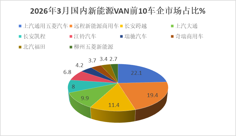 上表可见,2026年前3月国内新动力VAN市集前十车企竞争格式呈现以下主要特征: