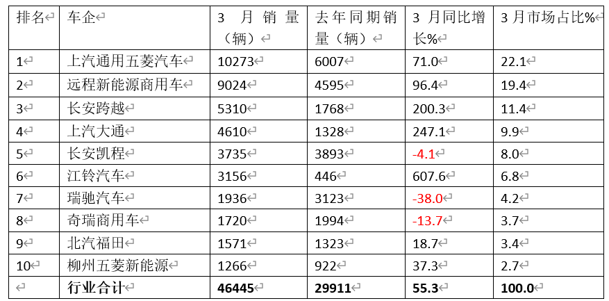 表2,2026年3月国内新动力VAN前十车企销量同比、市集占比统计(数据起首:终局上牌)
