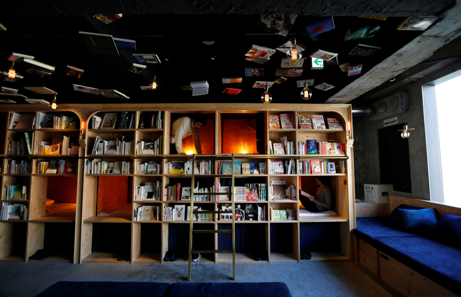 日本东京一家以书店为主题的胶囊栈房。图源:IC