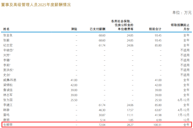 翔云优配凭证该公司2025年年报裸露,生柳荣先生2025年度从公司获取的税前报酬总和为100.31万元。