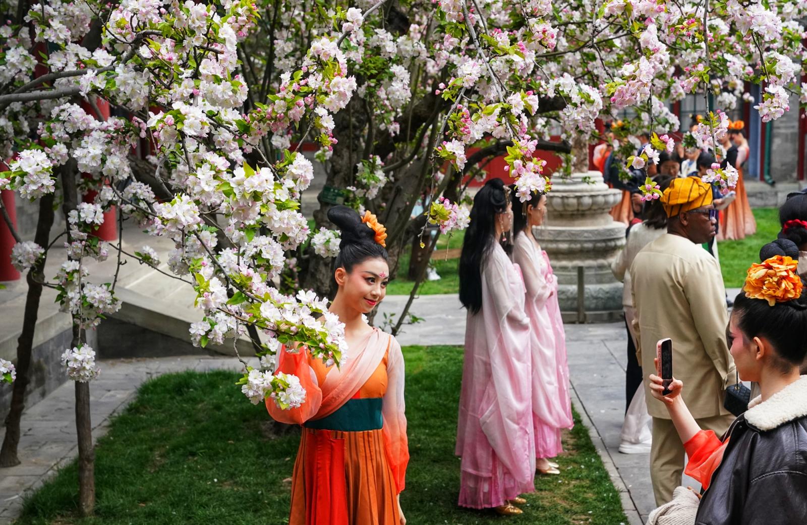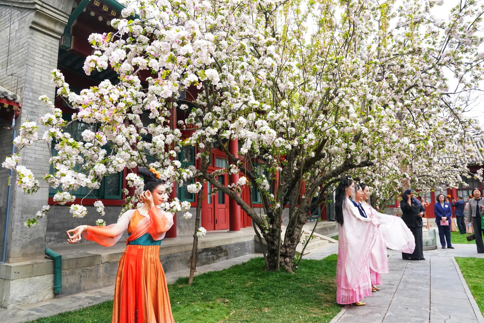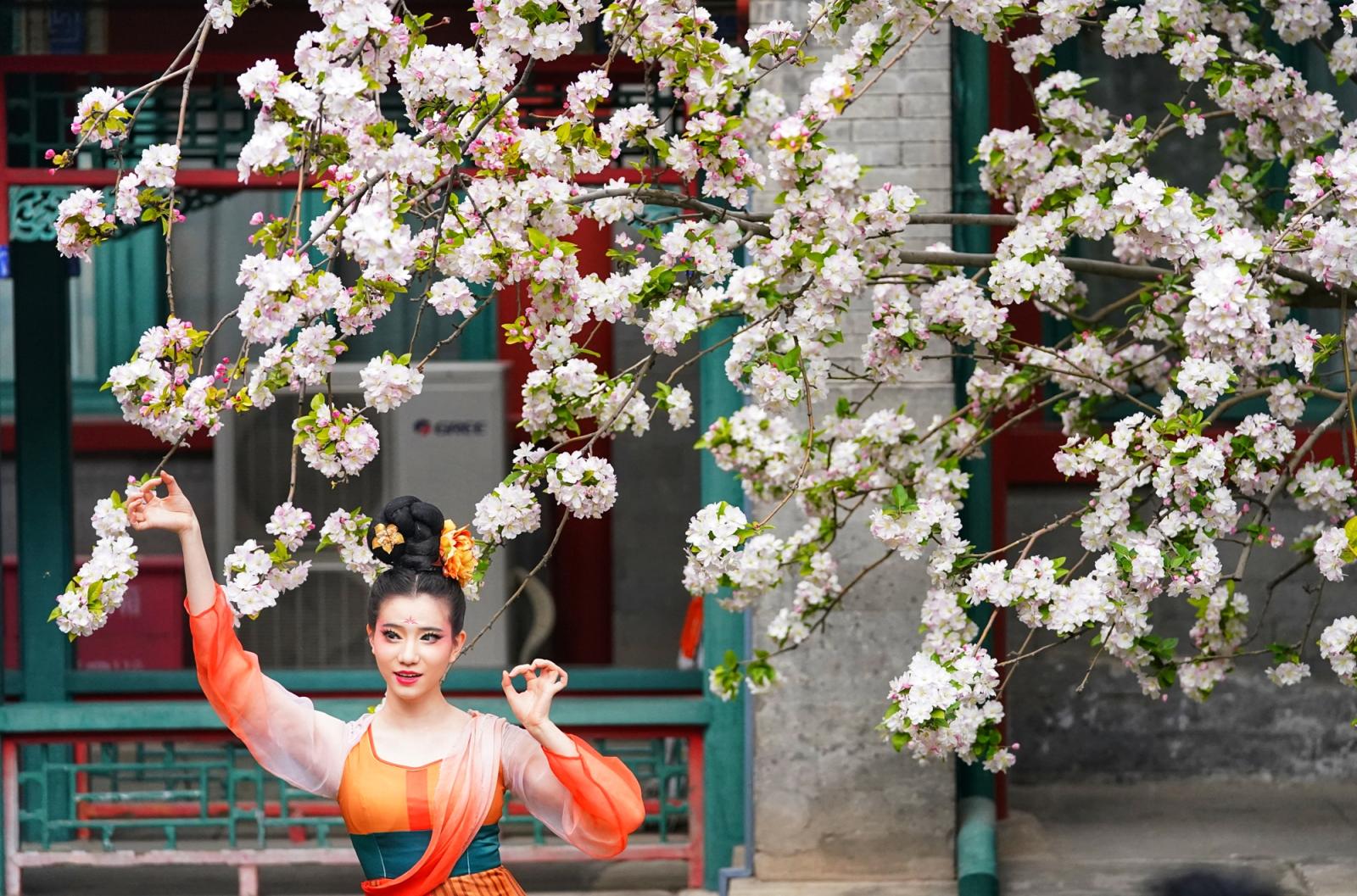 近日,北京宋庆龄故园内两株逾200年树龄的西府海棠干涉盛花期,粉白似锦缀满枝端,如云似雪映朱红古建,成为春日京城一抹动东谈主景致,眩惑渊博中外旅客慕名前来打卡、存身赏春。