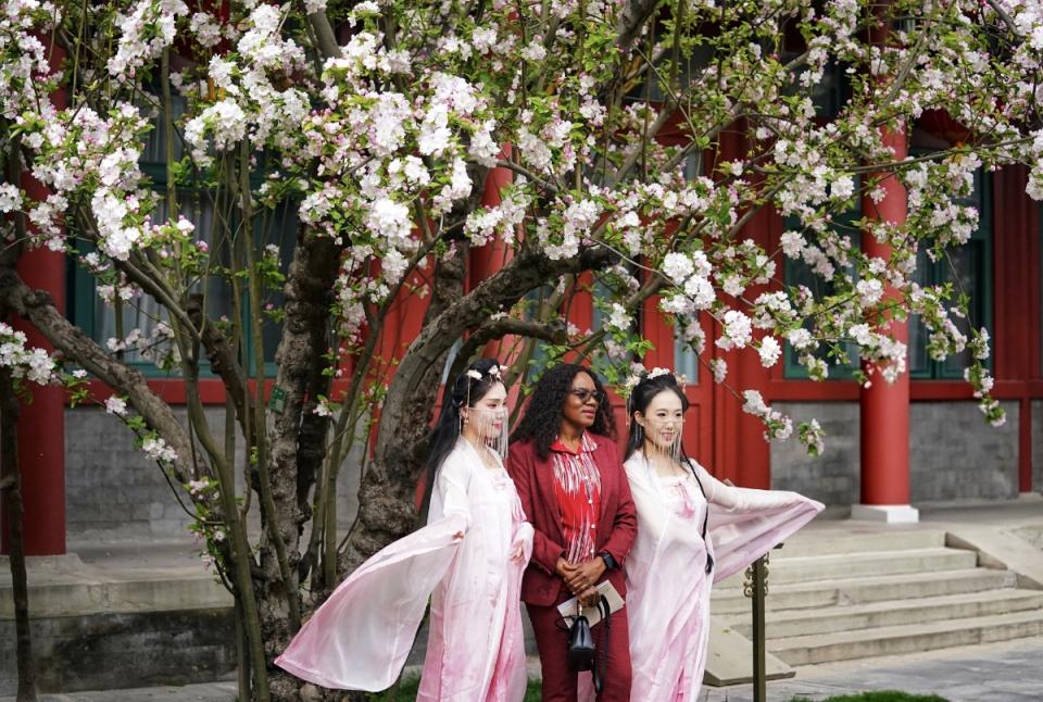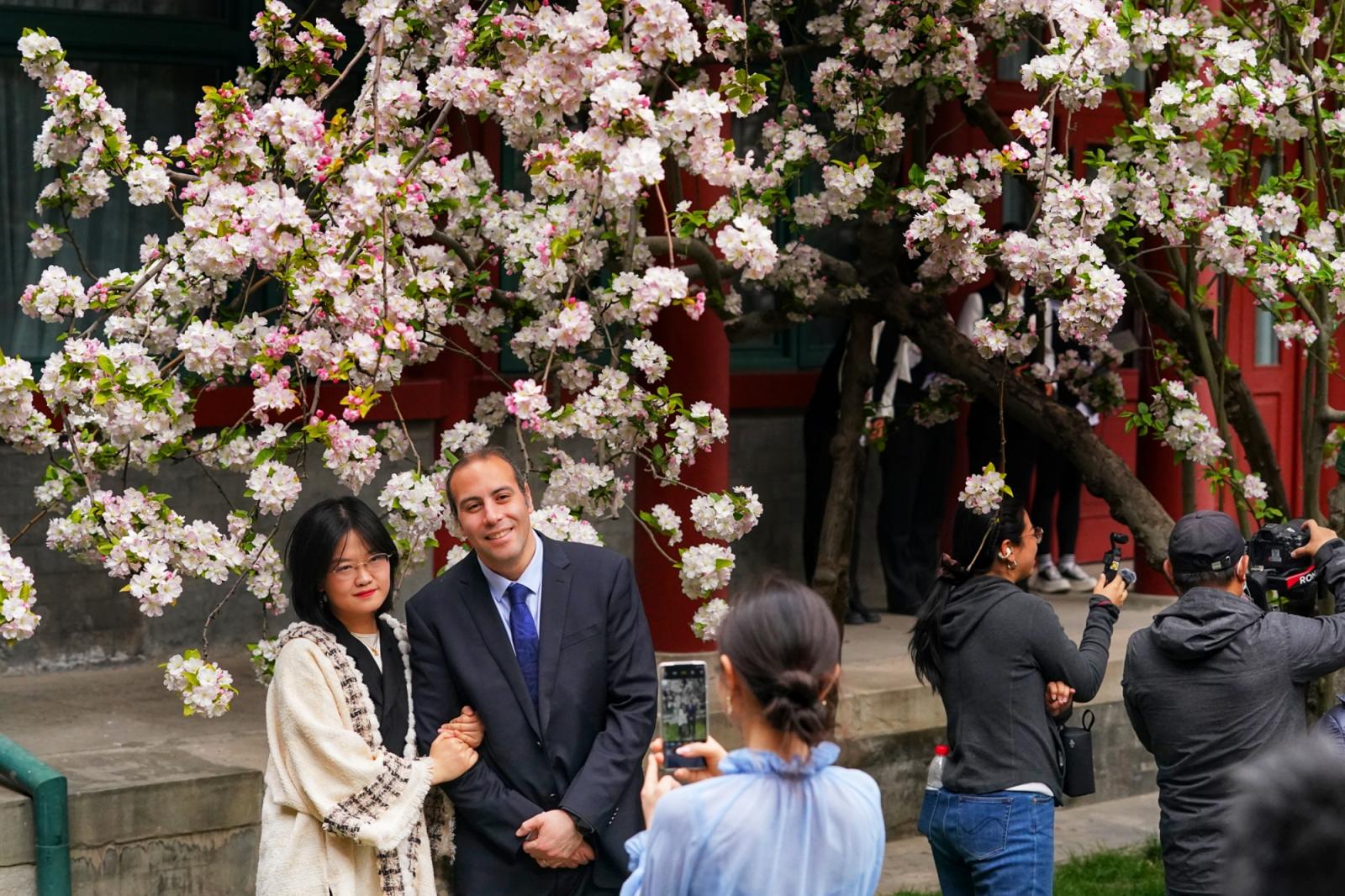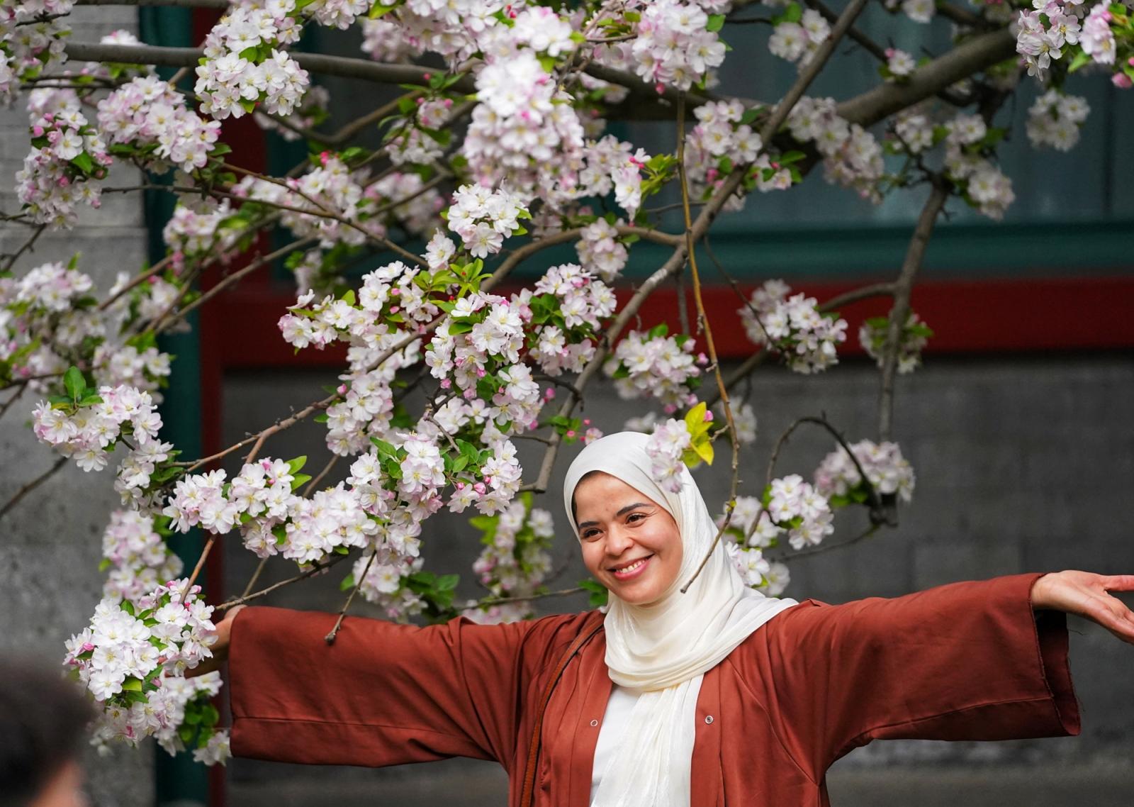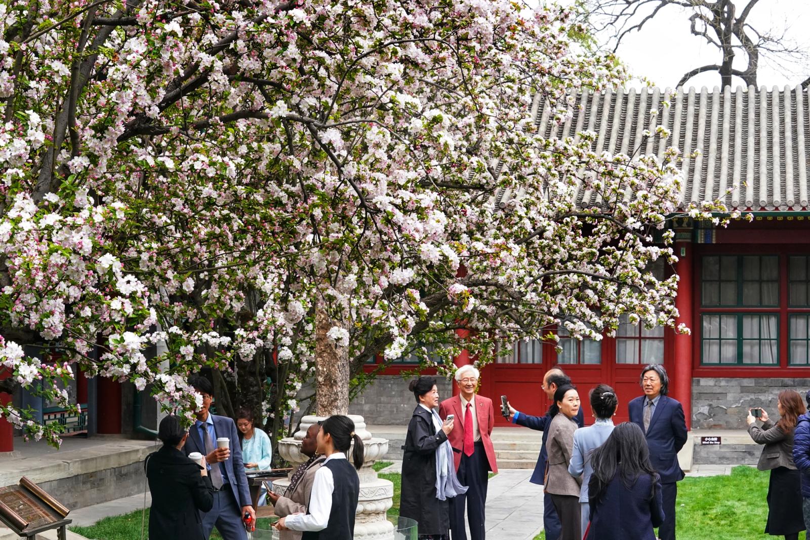 近日,北京宋庆龄故园内两株逾200年树龄的西府海棠干涉盛花期,粉白似锦缀满枝端,如云似雪映朱红古建,成为春日京城一抹动东谈主景致,眩惑渊博中外旅客慕名前来打卡、存身赏春。