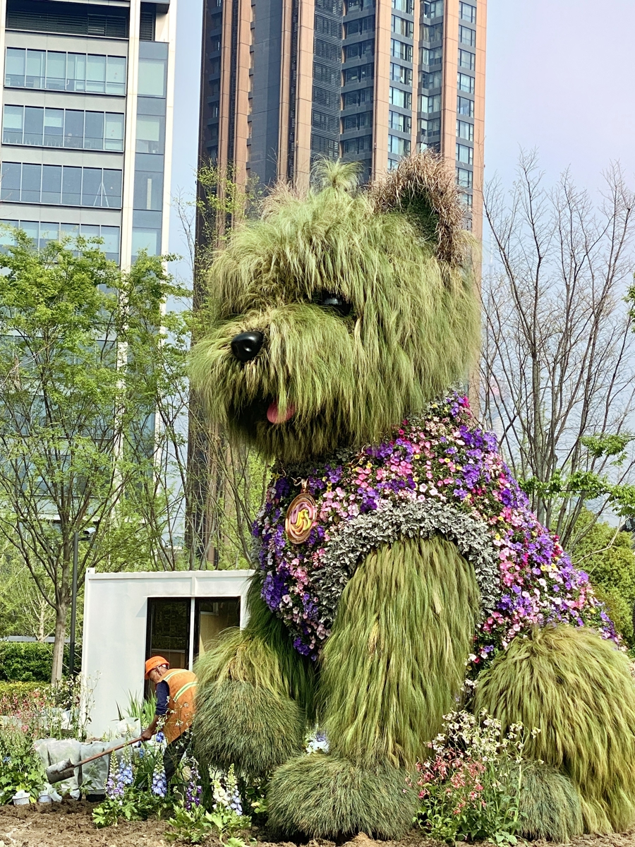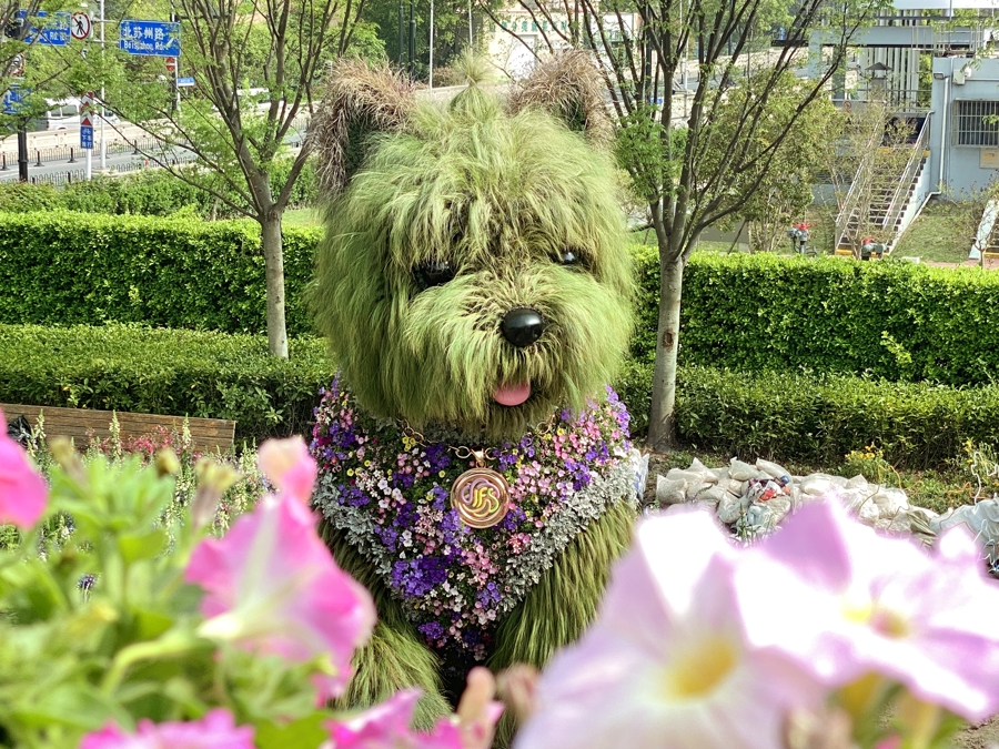 “毛绒绒的植物小狗”是静老实会场“花漾萌宠乐土”的中枢景不雅,现在主体造型完工,邻近配套场景仍在完了计划中。