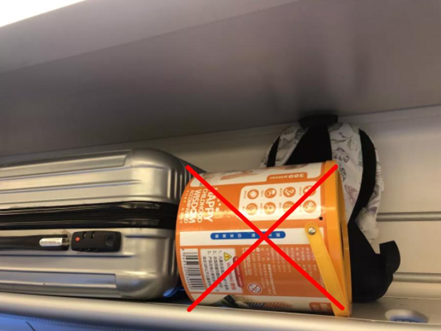 行李箱摆放时不可开首行李架角落,应遴荐顺行李架方位摆放。