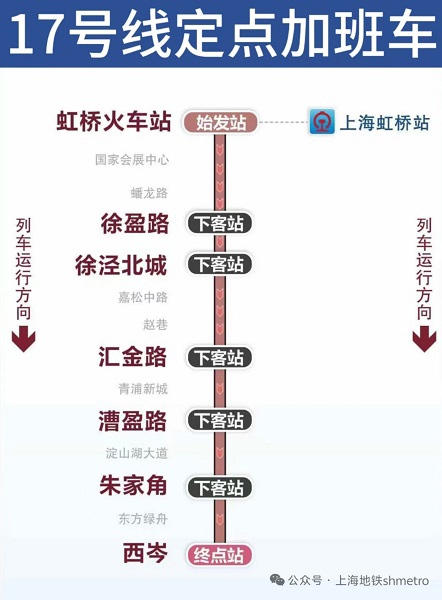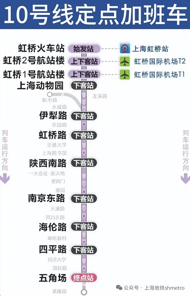 根据计划,“春运”期间,逢周日,2号线虹桥火车站站夜间定点加班车延至0点。同时,2月21日,2、9、17号线加开末班车延长至次日0点(9号线在23:00和23:20加开的列车,自佘山站起按常态延时运营实施)。2月22日、23日,1、2、9、10、17号线加开末班车延长至次日0点。