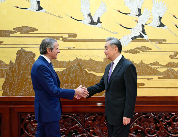 中共中央政事局委员、酬酢部长王毅26日在北京会见外洋原子能机构总劳动格罗西。